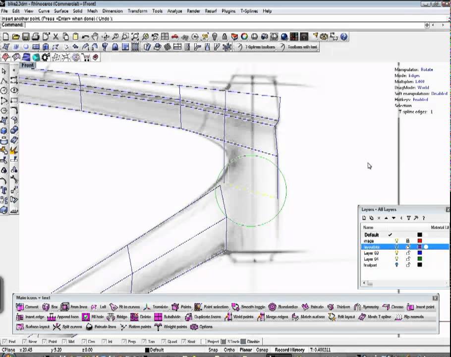 Ciao, magari è proprio quello che già stai facendo, altrimenti per il telaio bici mi ricordo qualche anno fa di aver seguito un tutorial su YouTube di un telaio bici per Tspline che era fatto davvero bene, prova a cercarlo